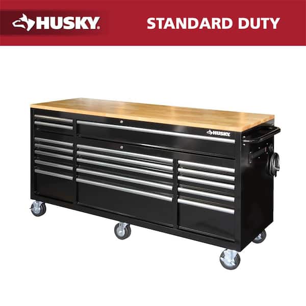 Husky Tool Storage 72 in. W Standard Duty Gloss Black Mobile Workbench Tool Chest