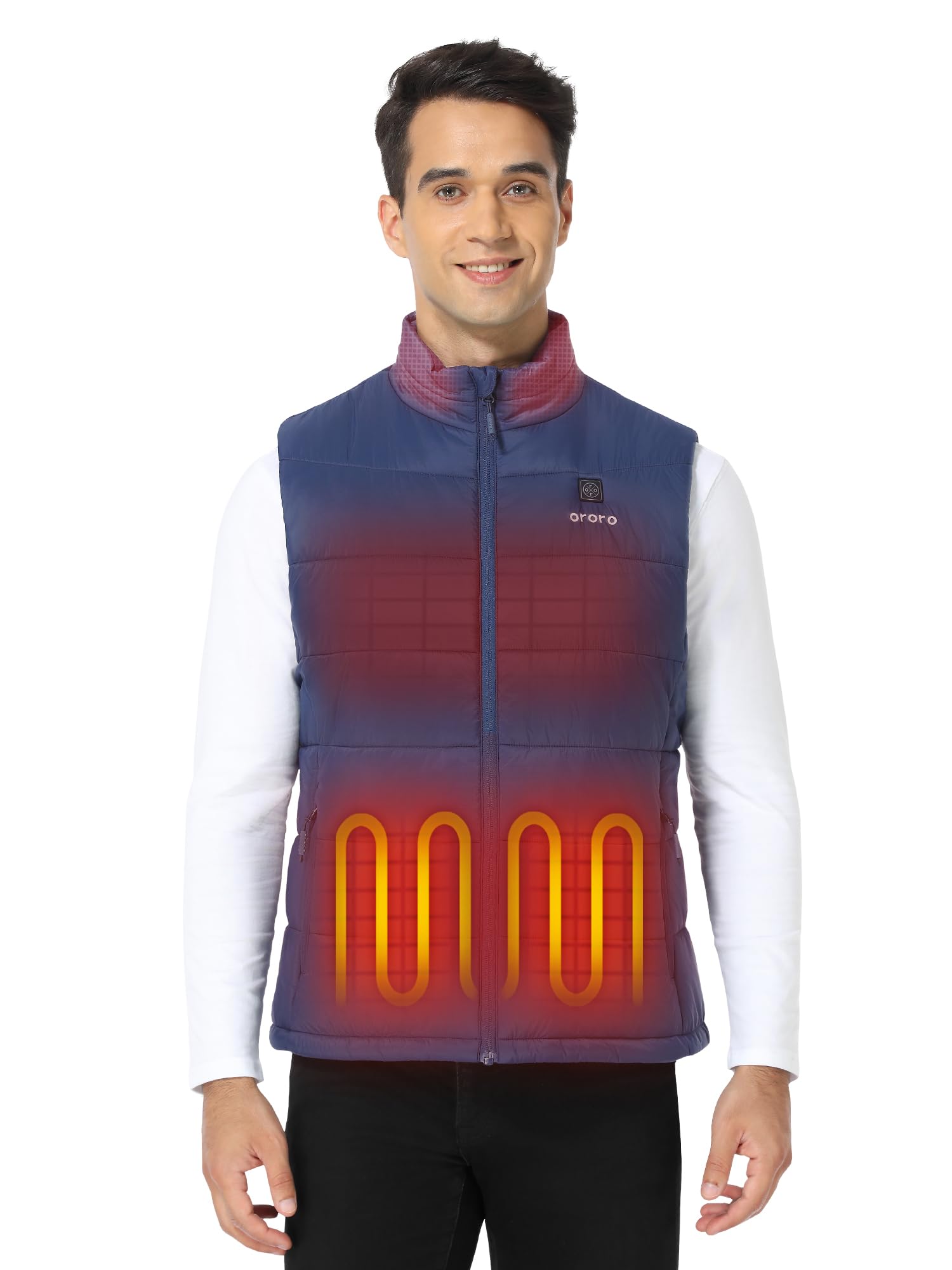 ORORO Men's Lightweight Heated Vest with USB-C Rechargeable Battery, Puffer Classic Heating Vest